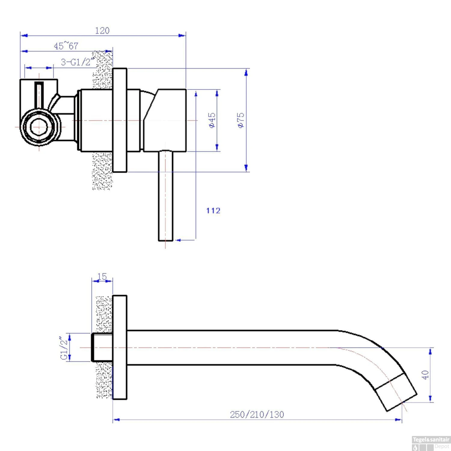 Wastafelkraan Best Design Ore Wand inbouw Uitloop 13cm RVS