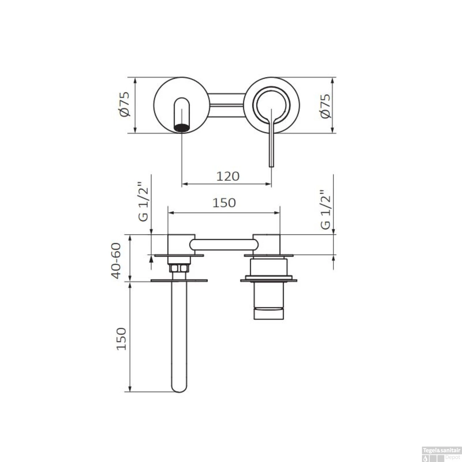 Specificaties Inbouw Wastafelkraan GRB Time zonder Waste Mat Zwart 15 cm: