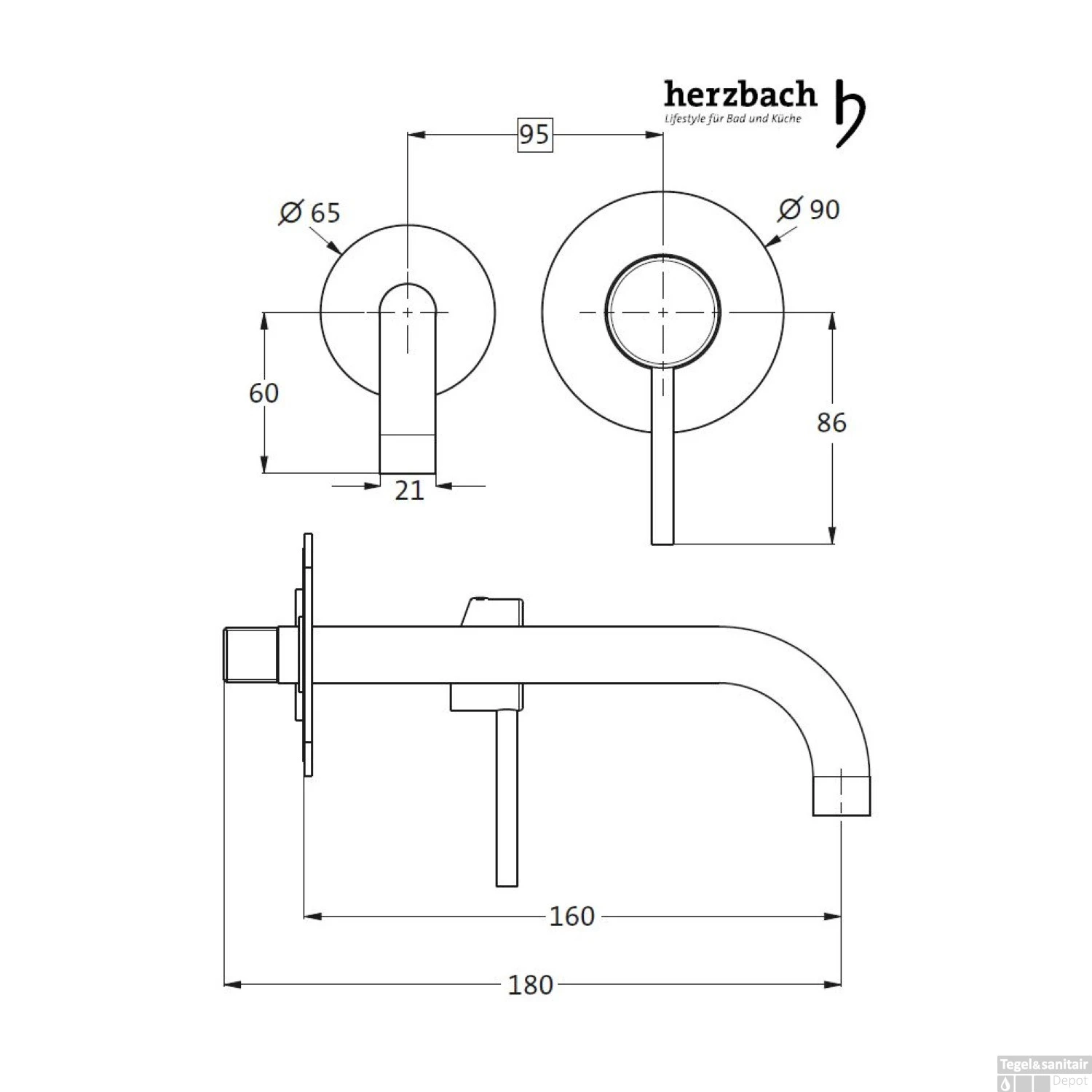 Specificaties Inbouw Wastafelmengkraan Herzbach Design New Messing Chroom 16 cm: