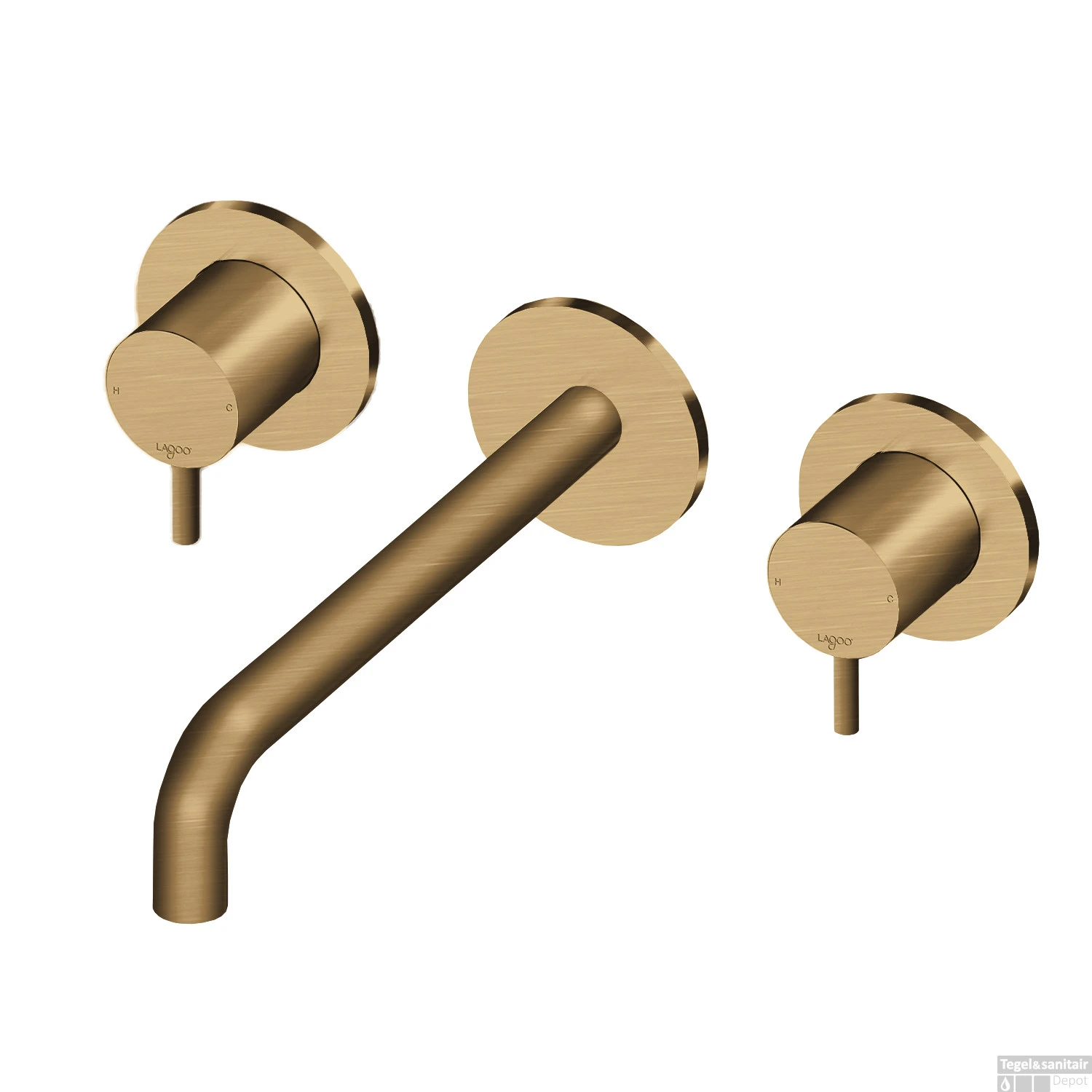 Specificaties Inbouw Wastafelmengkraan Lagoo Garda met Uitloop 2 Greeps 19 cm Messing Geborsteld Goud: