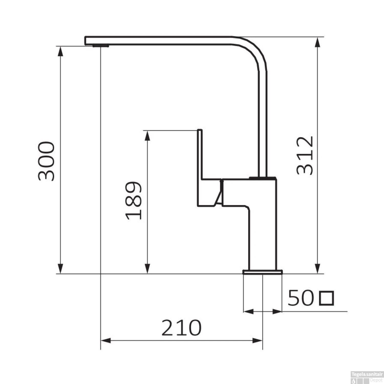 Specificaties Keukenkraan GRB Kitchen 30 cm Vierkant Messing Chroom: