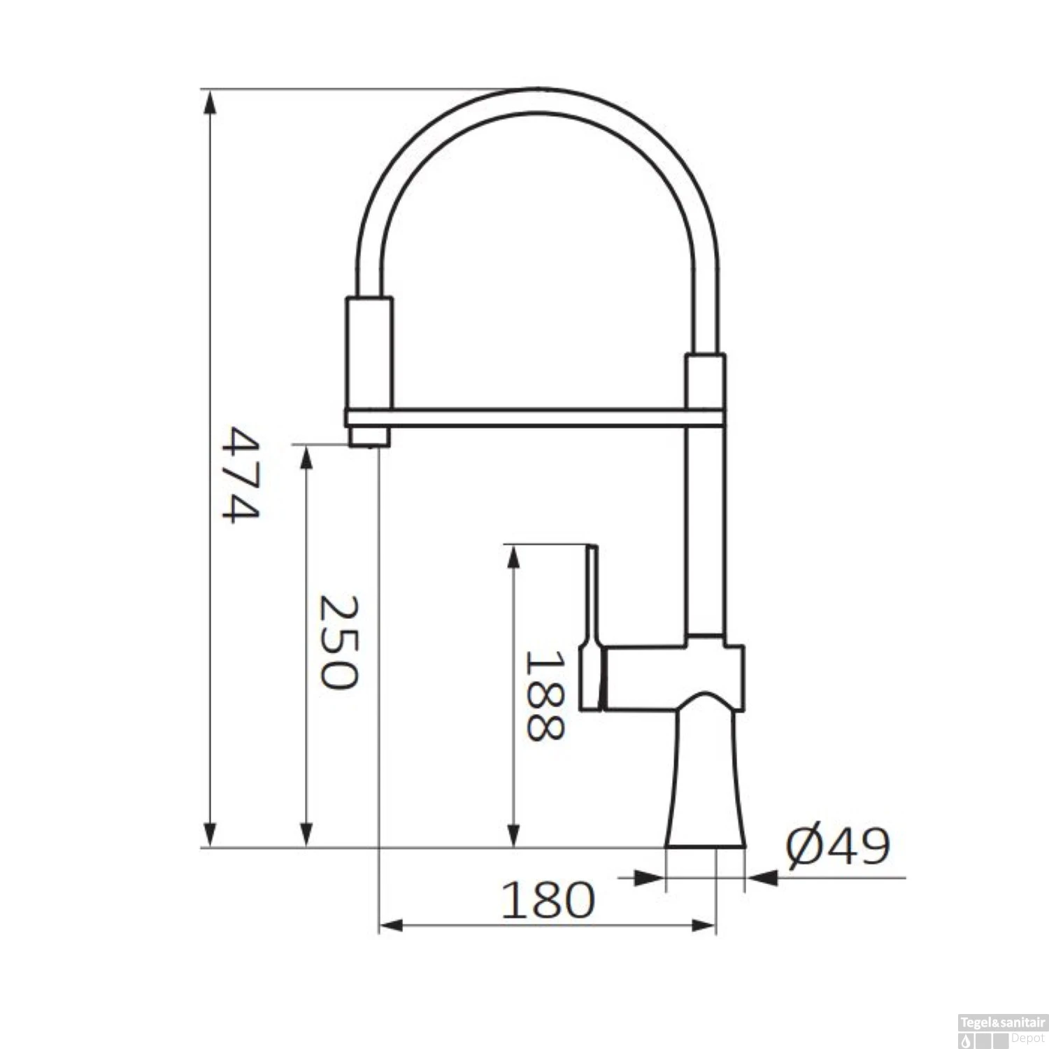- Hoogte kraan: 47,7 cm