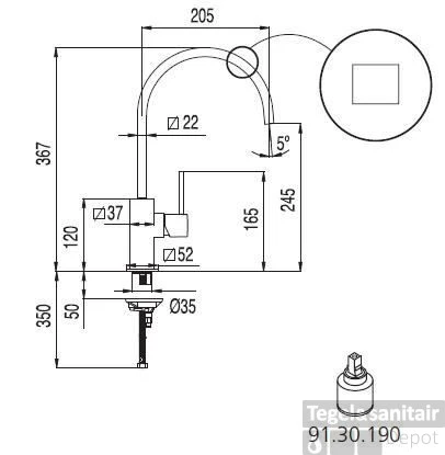 Specificaties Keukenkraan Tres Cocina Gebogen Uitloop 20.5 cm RVS:
