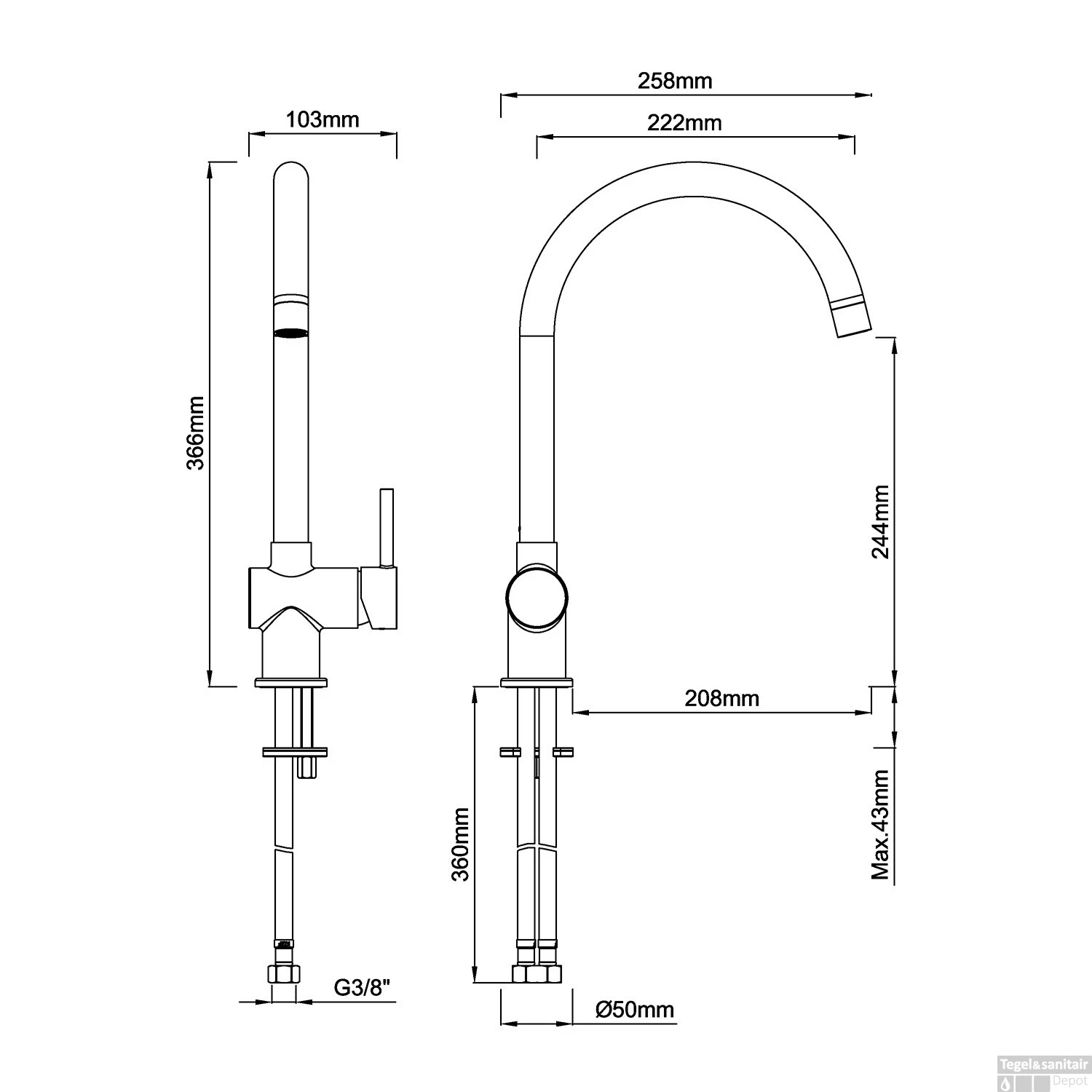 Specificaties Keukenmengkraan BWS Cemal Gunmetal: