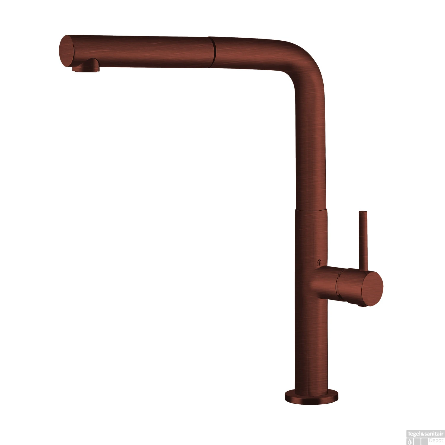 Specificaties Keukenmengkraan Lagoo Garda met Draaibare Uitloop Recht en Uitneembare Handdouche Messing Geborsteld Koper: