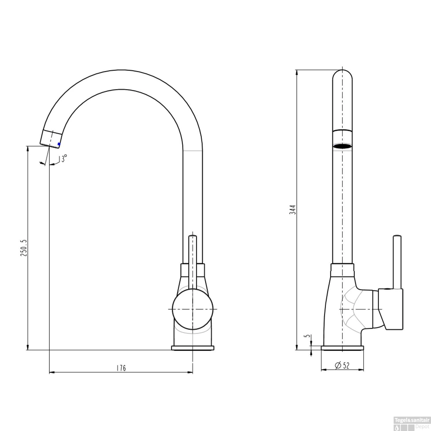 - – Lengte uitloop: 17.6 cm