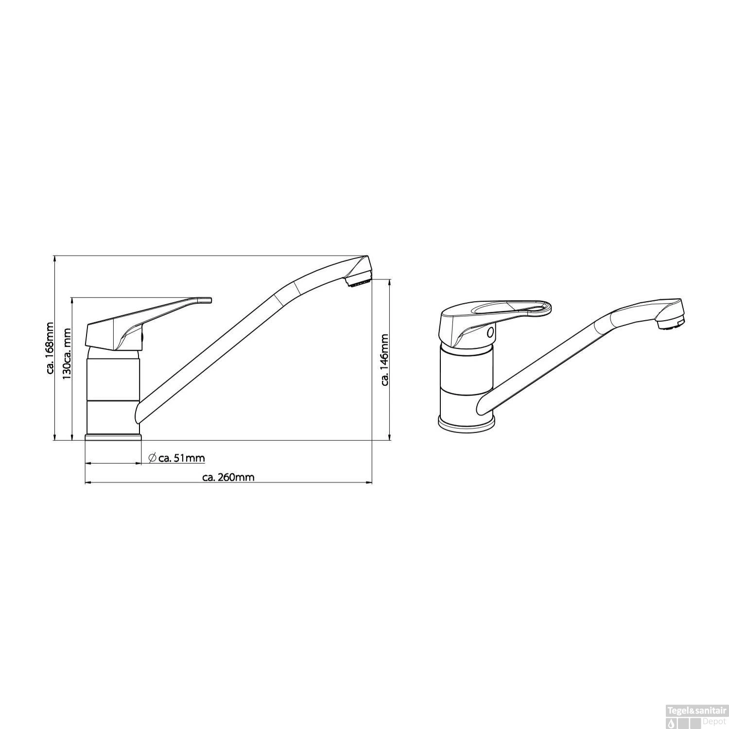 Met de hendel kunt u de temperatuur van het water regelen. De keukenkraan beschikt over een draaibare uitloop. De draaibare uitloop maakt het mogelijk om een dubbele vaat met water te vullen. De mengkraan is 26 cm lang, 16.8 cm hoog en heeft een diameter van 5.1 cm.