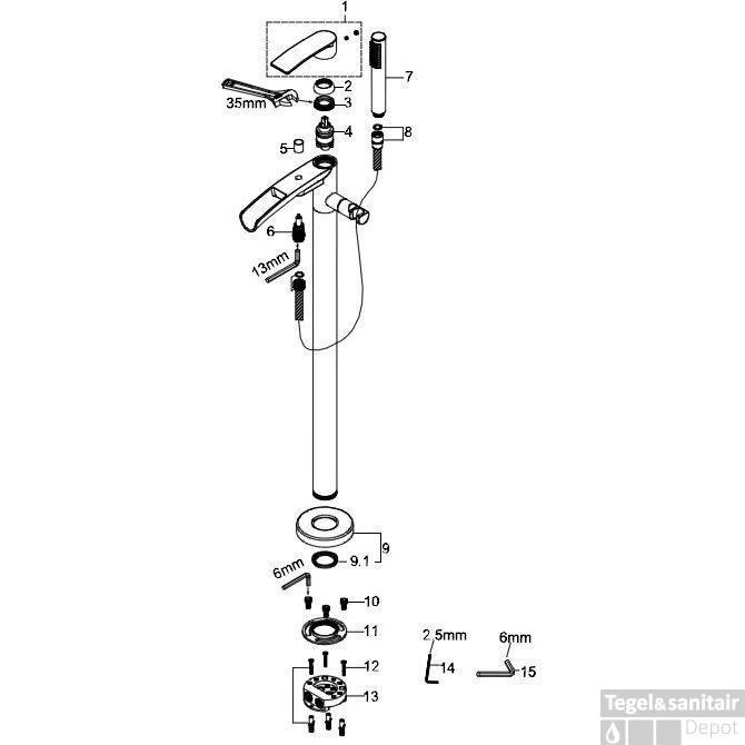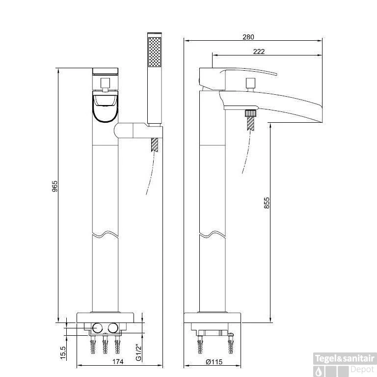 Lima vrijstaande badmengkraan waterval compleet chroom