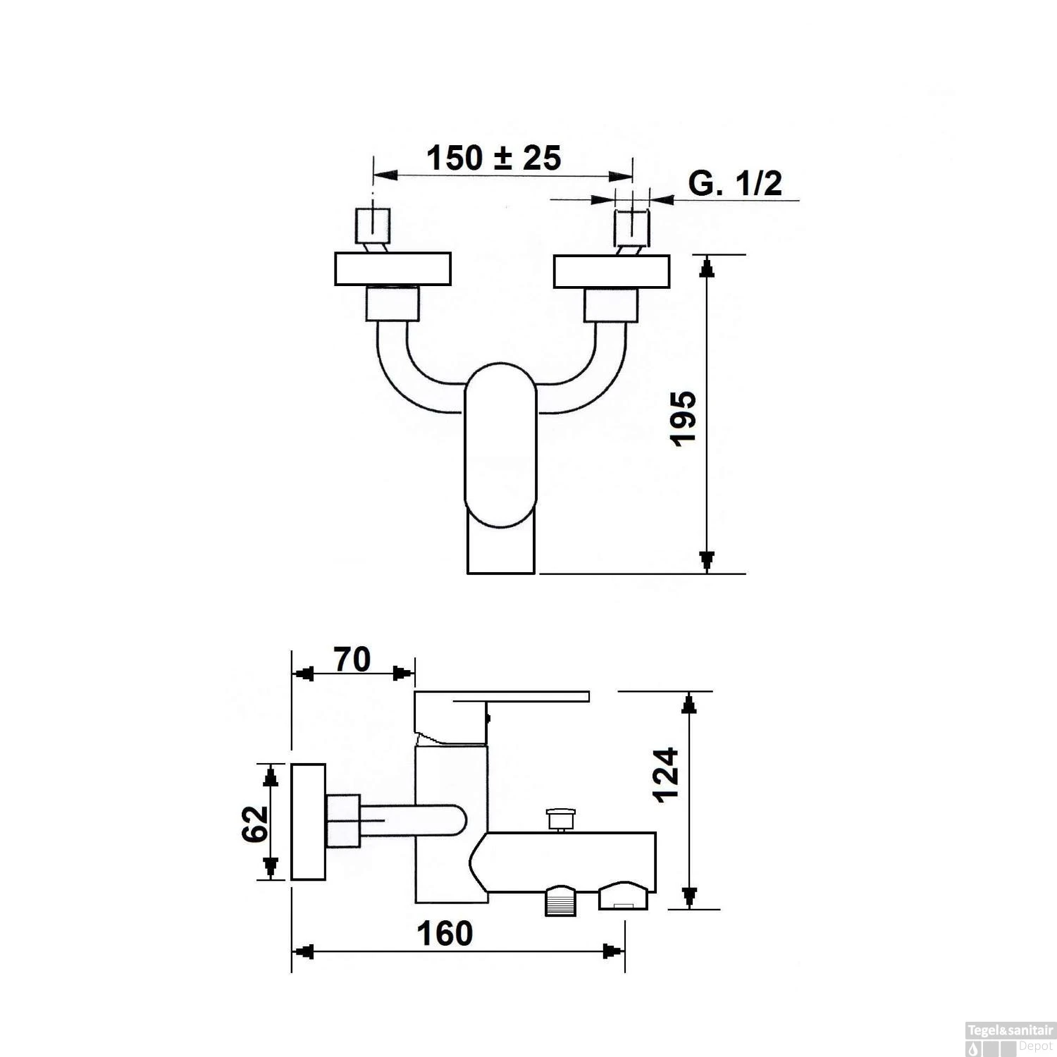 Specificaties Opbouw Badkraan Mengkraan 1-hendel 16 cm Chroom Sapho Dandy:
