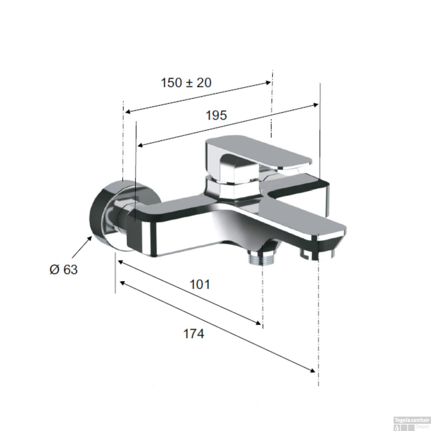 - – Diepte uitloop: 17.4 cm