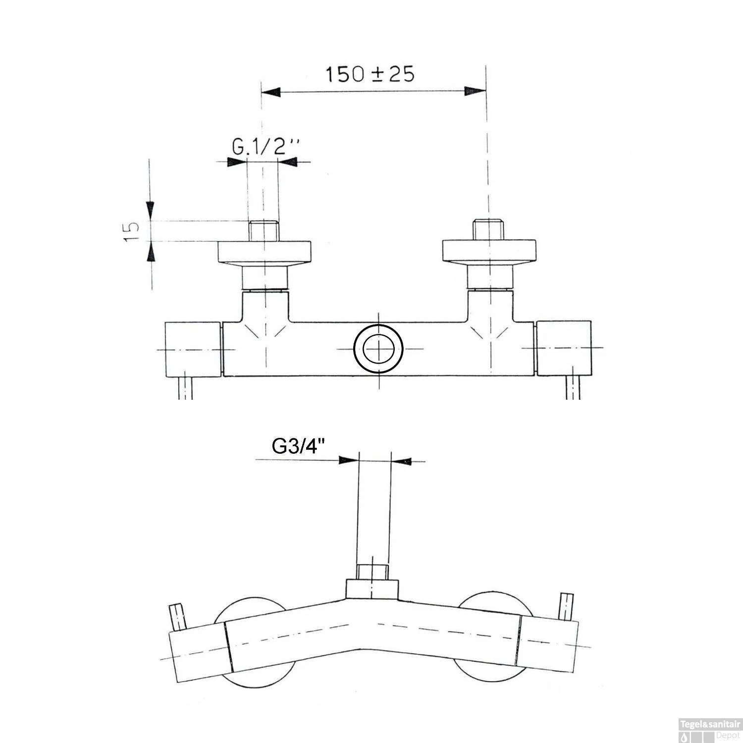 Specificaties Opbouw Douchekraan Mengkraan Boven 2-knop Chroom Sapho Airtech: