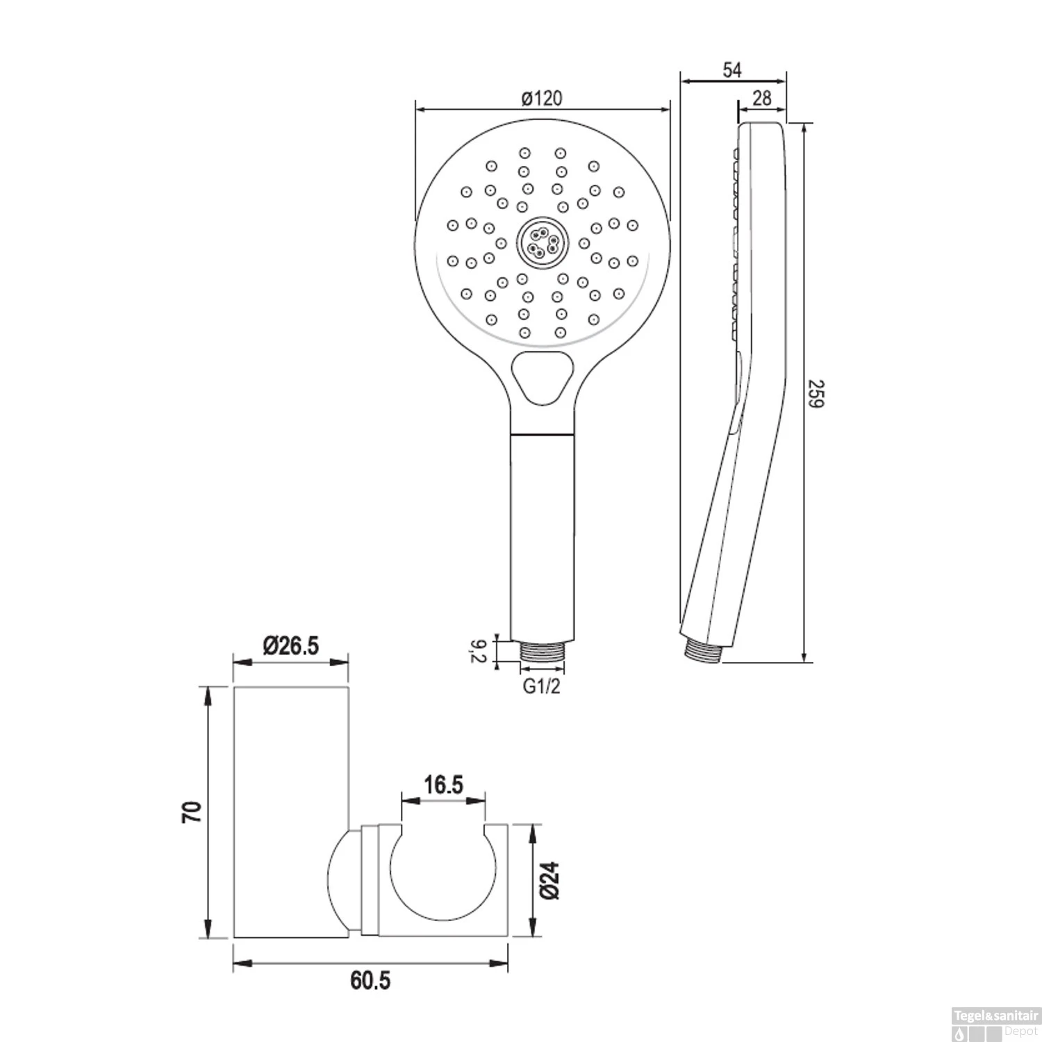 - Lengte handdouche: 26.5 cm
