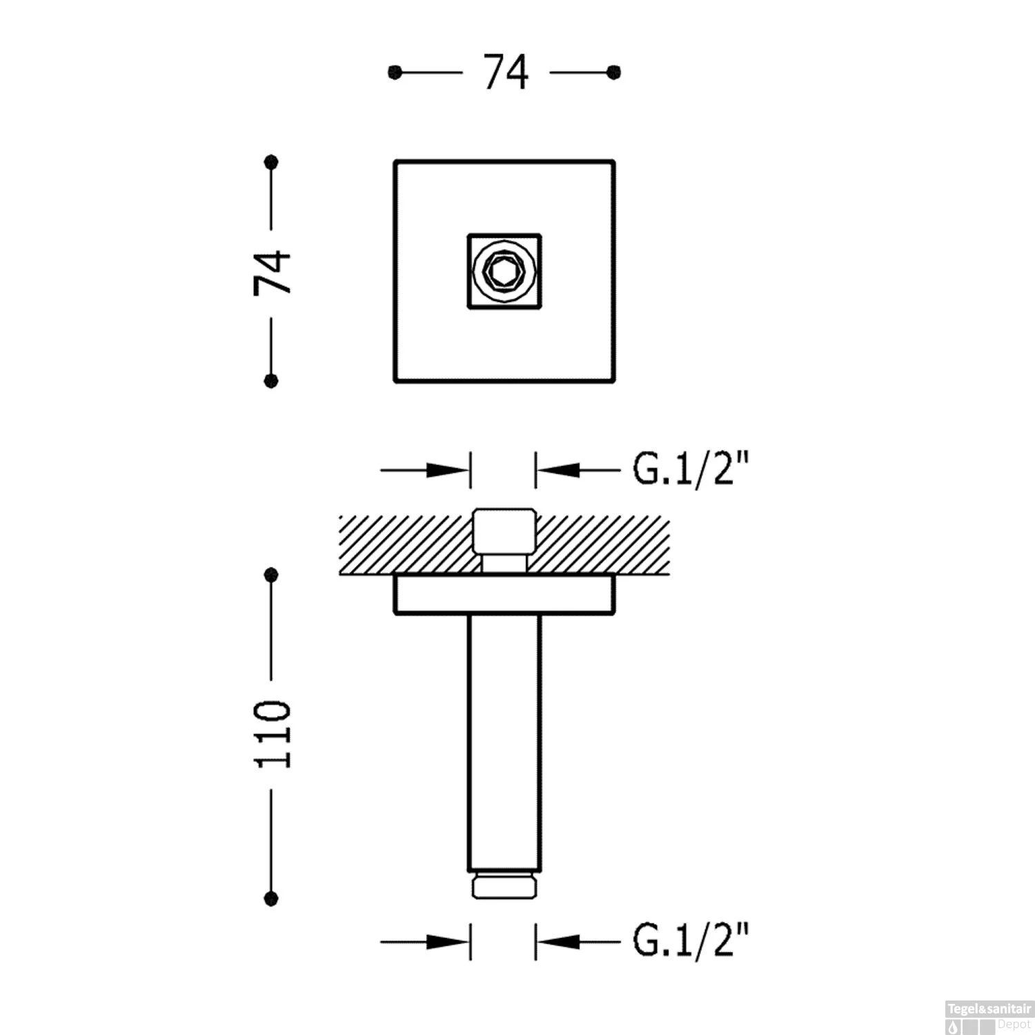 De plafondarm heeft een 1/2” aansluitmaat. Hierdoor toe te passen op vrijwel alle hoofddouches. Om kleurverschil te voorkomen, adviseren wij de combinatie met Tres producten.