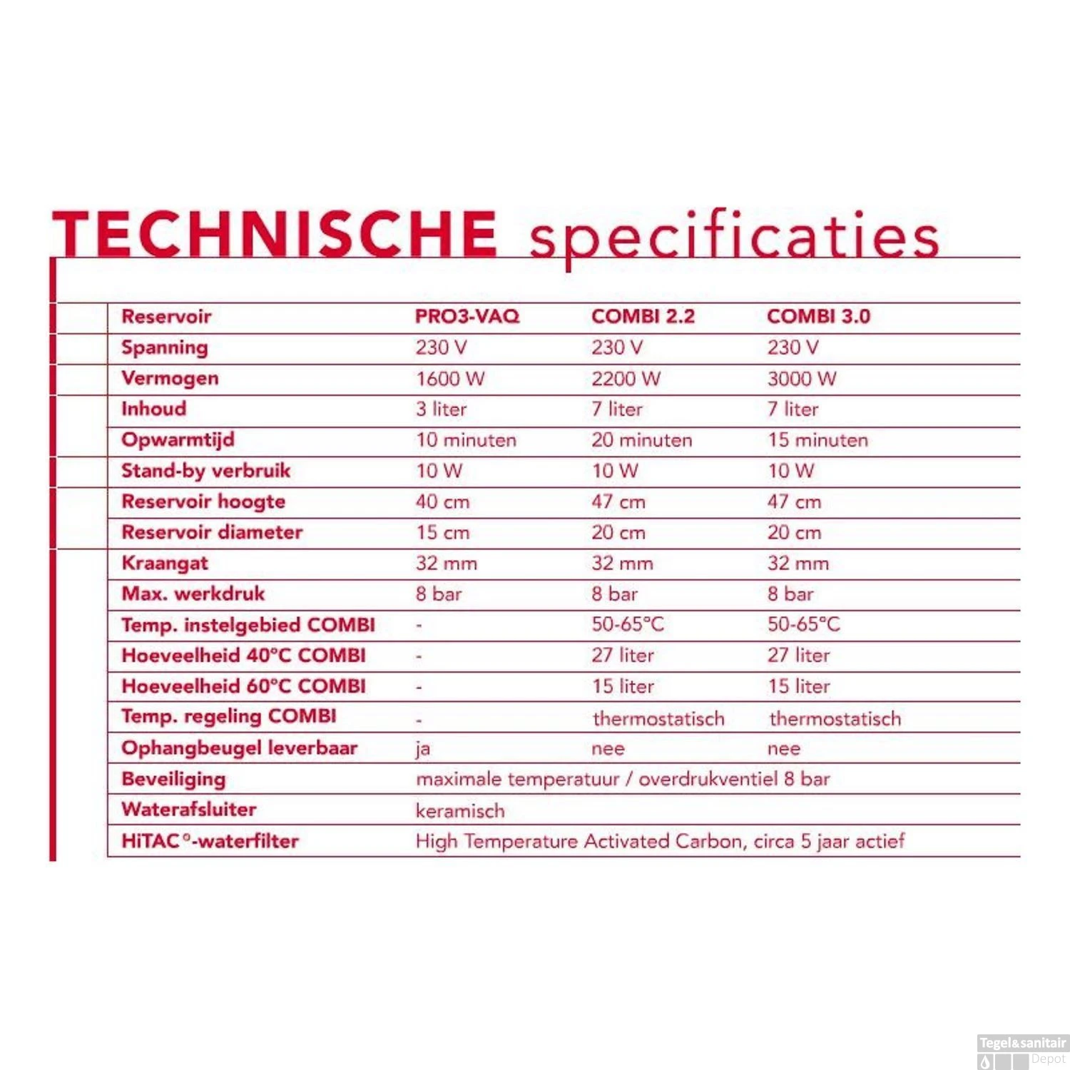 Specificaties Quooker Nordic Round Twintaps met PRO3 VAQ-E Boiler Chroom: