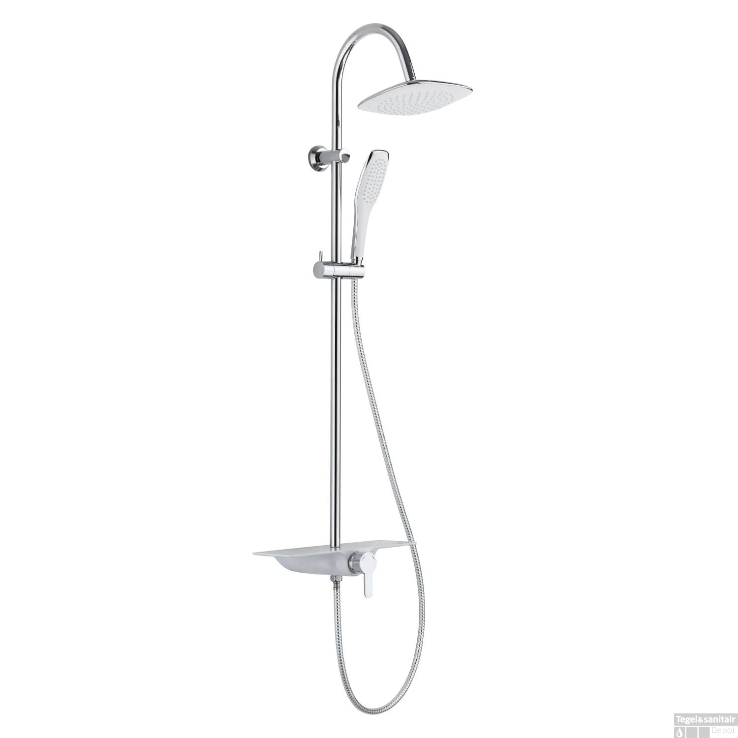Regendouche Eengreepsmengkraan Schutte Waterway met Planchet Chroom Wit