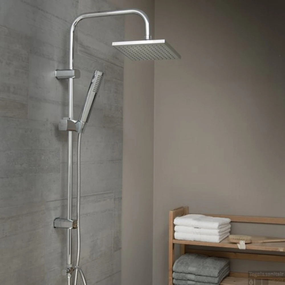 De set is grotendeels gemaakt van metaal en deels van kunststof. De hoofddouche heeft een diameter van 20 cm en beschikt over antikalk sproeigaatjes. Ook de handdouche is uitgerust met deze sproeigaatjes. De hoofddouche is een zogeheten ‘stortdouche’ waardoor het uitstromende water een absoluut wellness-gevoel zal geven! Deze set wordt geleverd zonder thermostatische kraan: deze kunt u onderaan de webpagina aan de bestelling toevoegen.