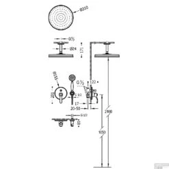Regendoucheset Tres 3V 3-Weg Mengkraan Met Waterval Handdouche Staal