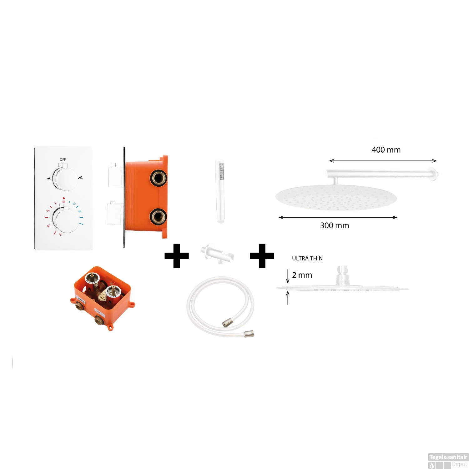 Specificaties Regendoucheset Rond Thermostatische Inbouwset Mat Wit Best Design White: