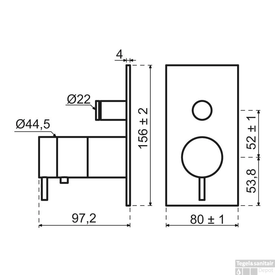 Stijlvol en strak, de vierkante Flow thermostatische inbouwkraan geeft u controle over uw douchesysteem met een simpele druk op de knop wisselt u tussen de hand- en hoofddouche (2-weg), met de onderste stelt u de juiste temperatuur in. Inclusief thermostatische inbouwkraan met een staafhanddouche en wand-arm met een hoofdouche met een diameter van 250mm. Inclusief inbouwmodule met een inbouwdiepte van slechts 55mm. De module is daarom in bijna alle situaties te plaatsen.
