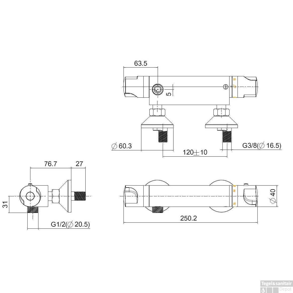Thermostaatkraan Universal douchekraan 15cmÂ