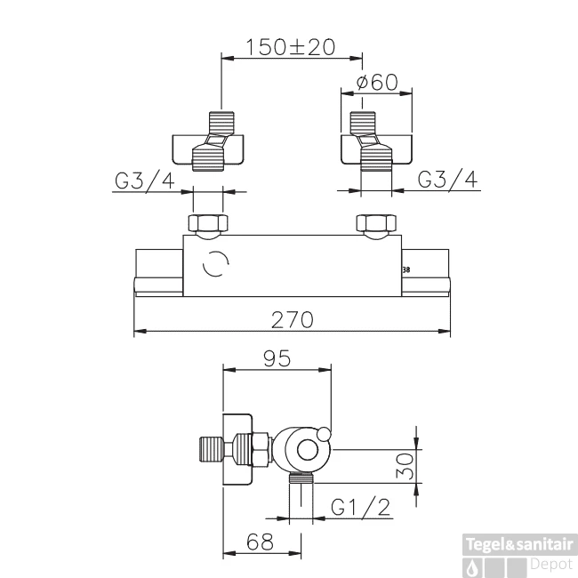 Deze thermostaat kraan is  van het merk Wiesbaden en staat garant voor kwaliteit en design. Dankzij de keramische schijven heeft de thermostaatkraan een soepele beweging van de knoppen. De HOH maat is 15cm en is daarom op vrijwel alle bestaande muurplaten te plaatsen. Deze thermostaatkraan is voorzien van een kinderslot op 38 graden.Het design zorgt voor een mooie uitstraling in uw badkamer.