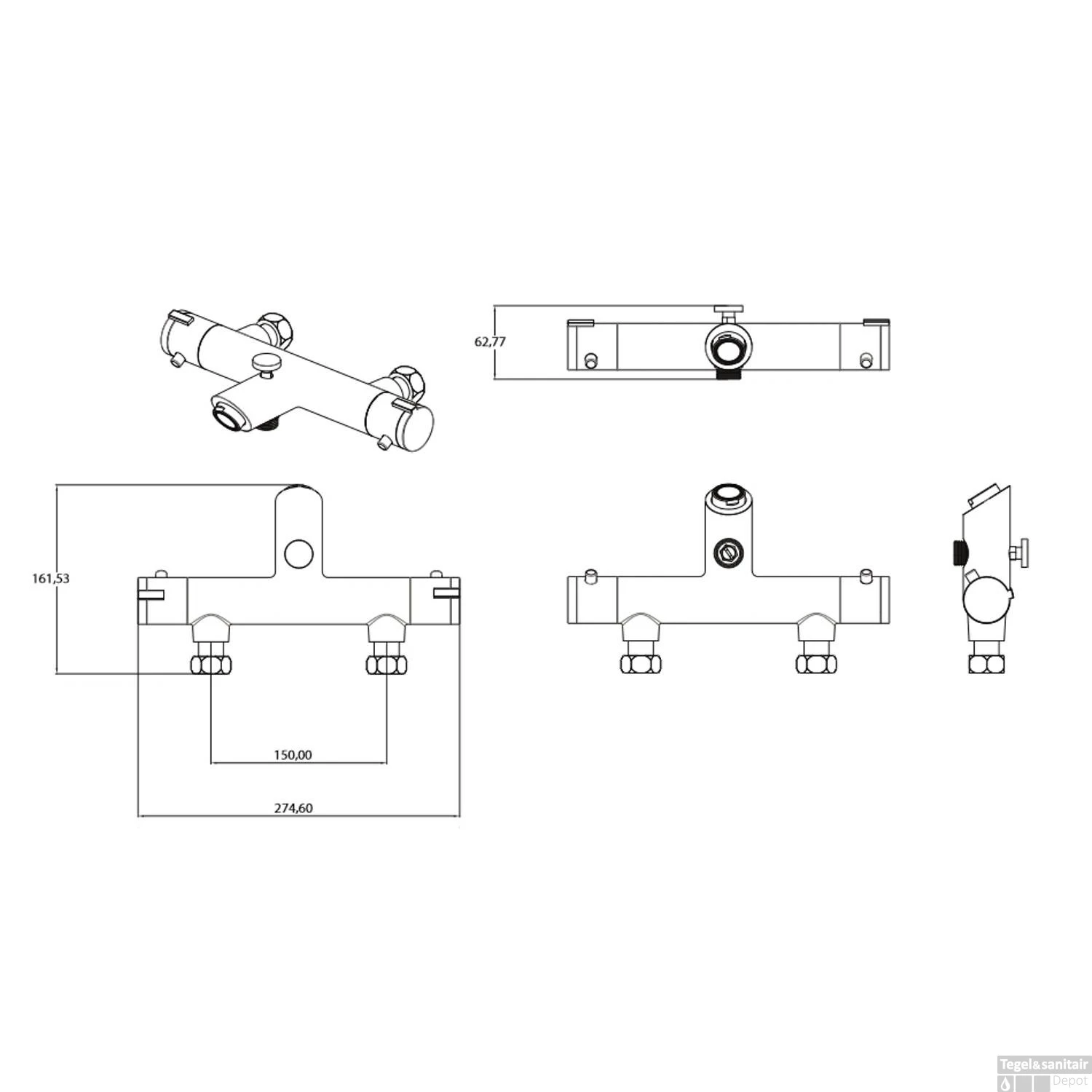 Specificaties Thermostatische Badkraan Schutte London Chroom: