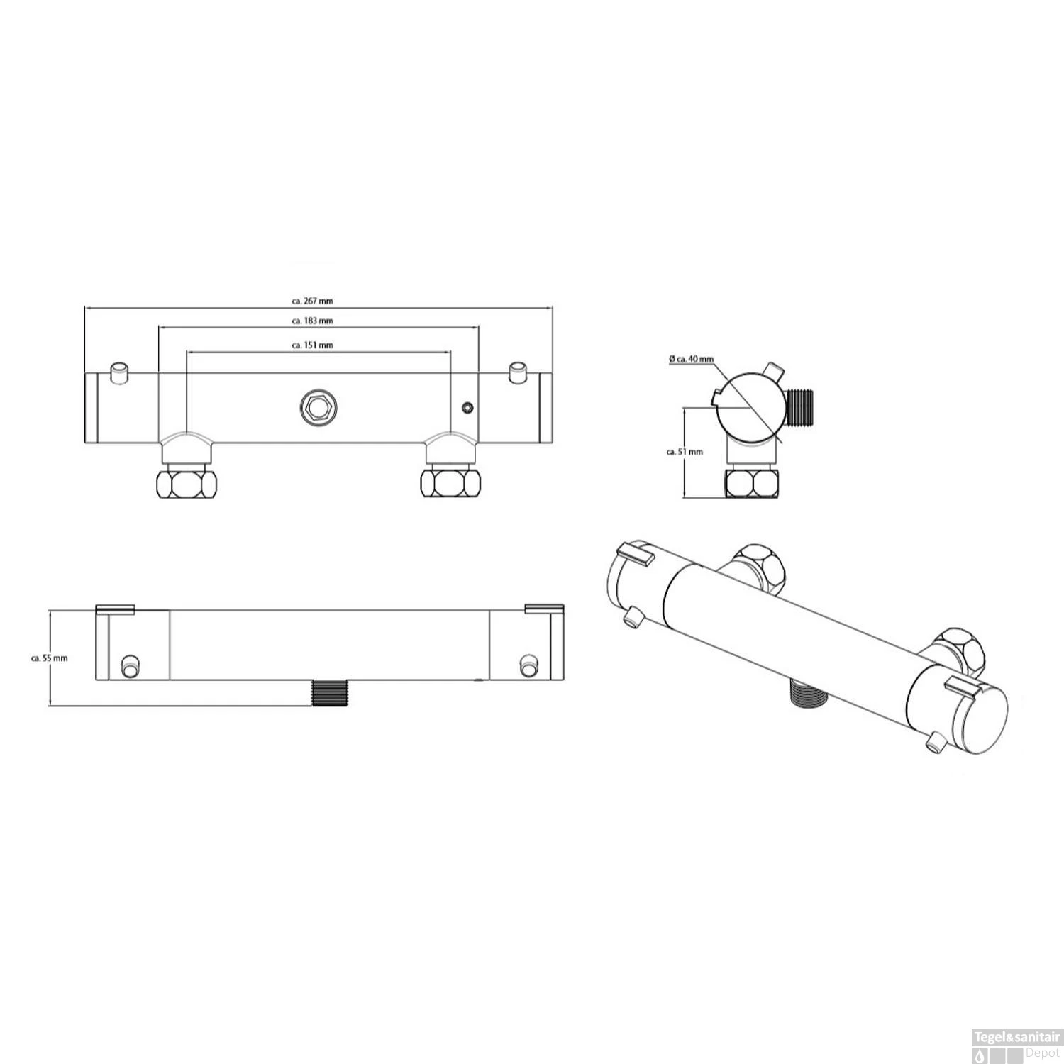 Specificaties Thermostatische Douchekraan Schutte London Chroom: