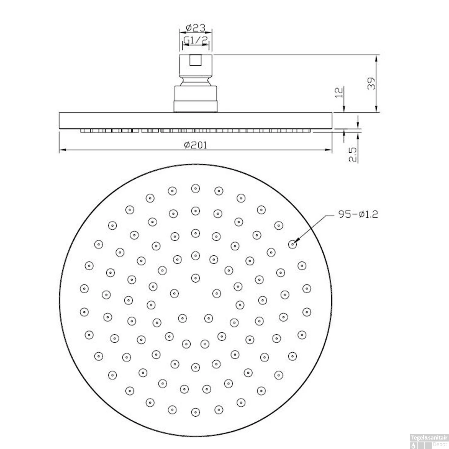 Specificaties Thermostatische Inbouw Regendouche Set Plafondarm 20 cm Rond Wiesbaden Type 1: