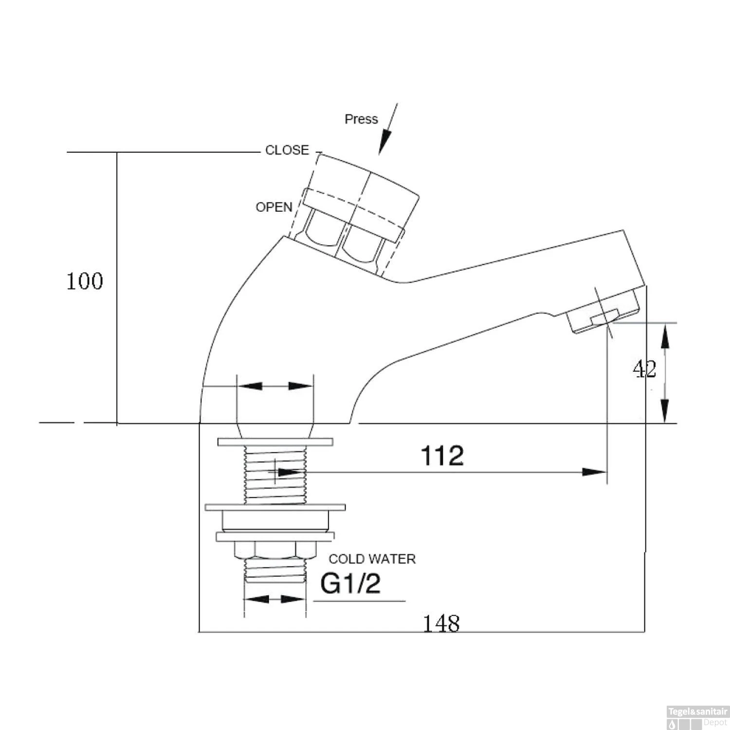 Het voordeel van de Toiletkraan Best Design Delay Staand Zelf sluitend Chroom is dat hij zelf sluit nadat u op de knop heeft gedrukt. Het is een koud water kraan voorzien van een delay. De delay blijft 4 tot 8 seconde open en sluit vervolgens zelf.