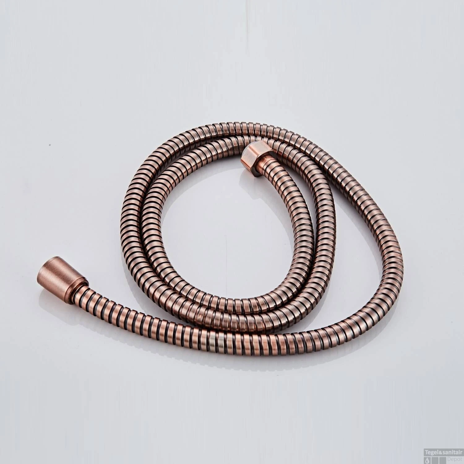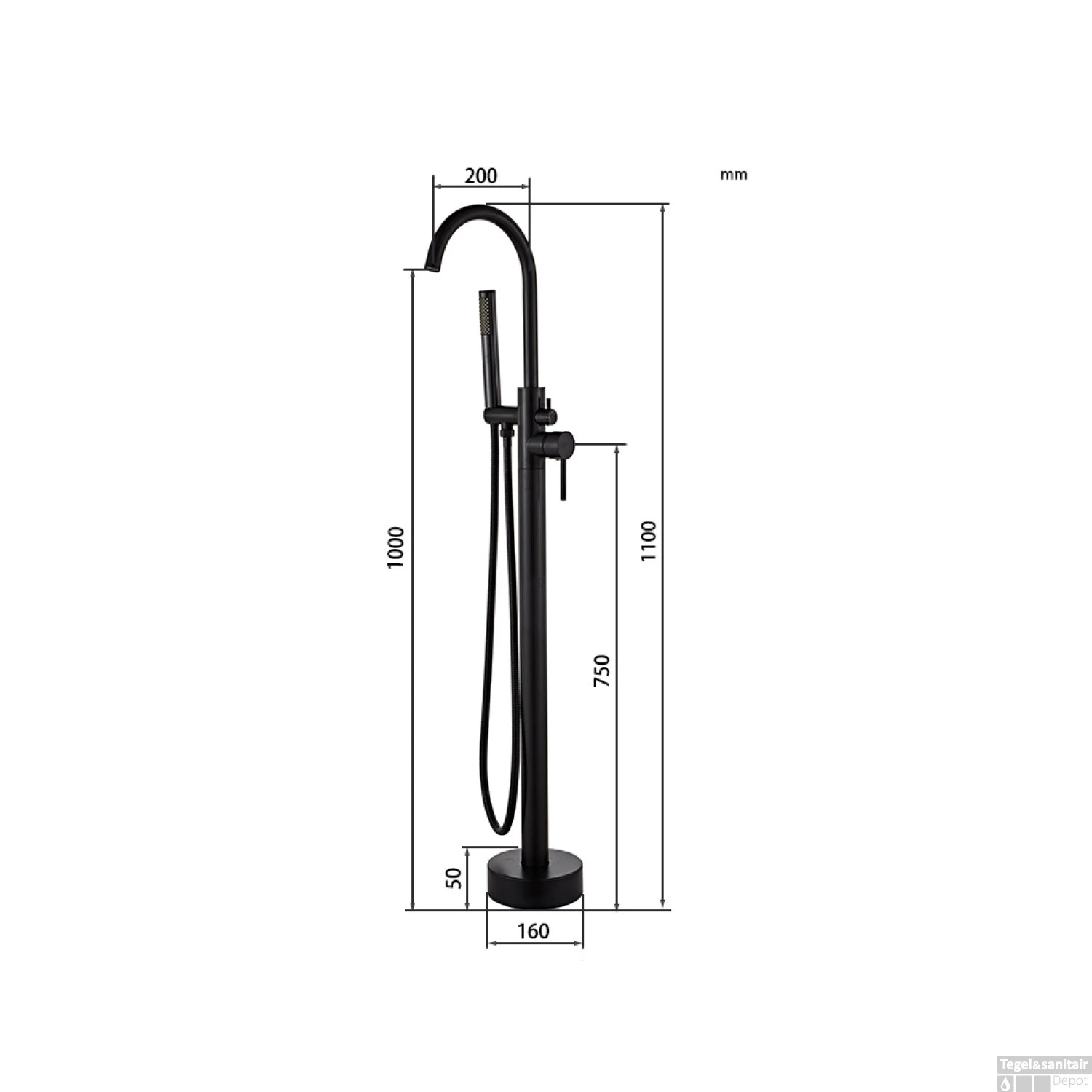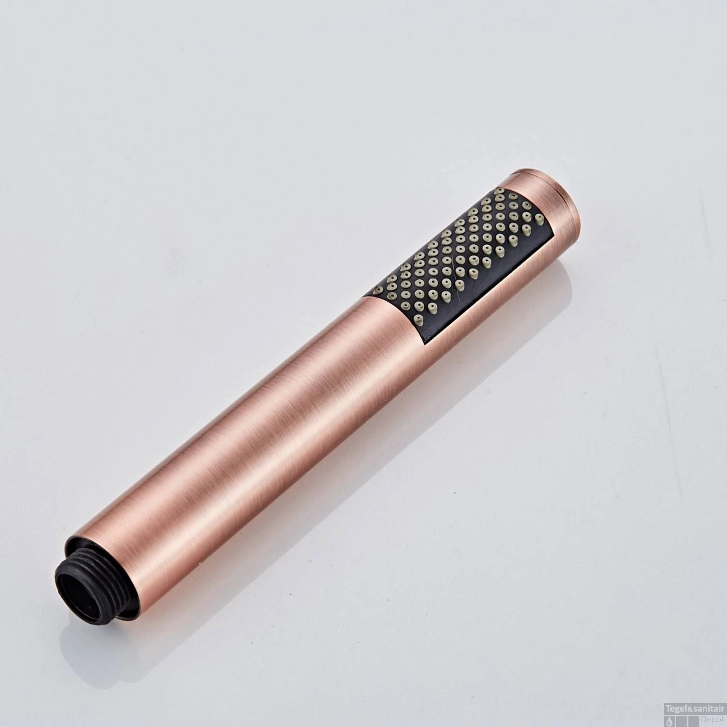 Bij een vrijstaande badkraan hoort een handdouche. Deze is, net als de badkraan, gemaakt van messing. Een stevig materiaal wat zeer goed in natte ruimtes gebruikt kan worden. De handdouche vorm is gelijk als de vorm van de badkraan, zeer elegant en stijlvol. De handdouche is voorzien van siliconen sproeigaatjes. Deze zijn eenvoudig te ontkalken.