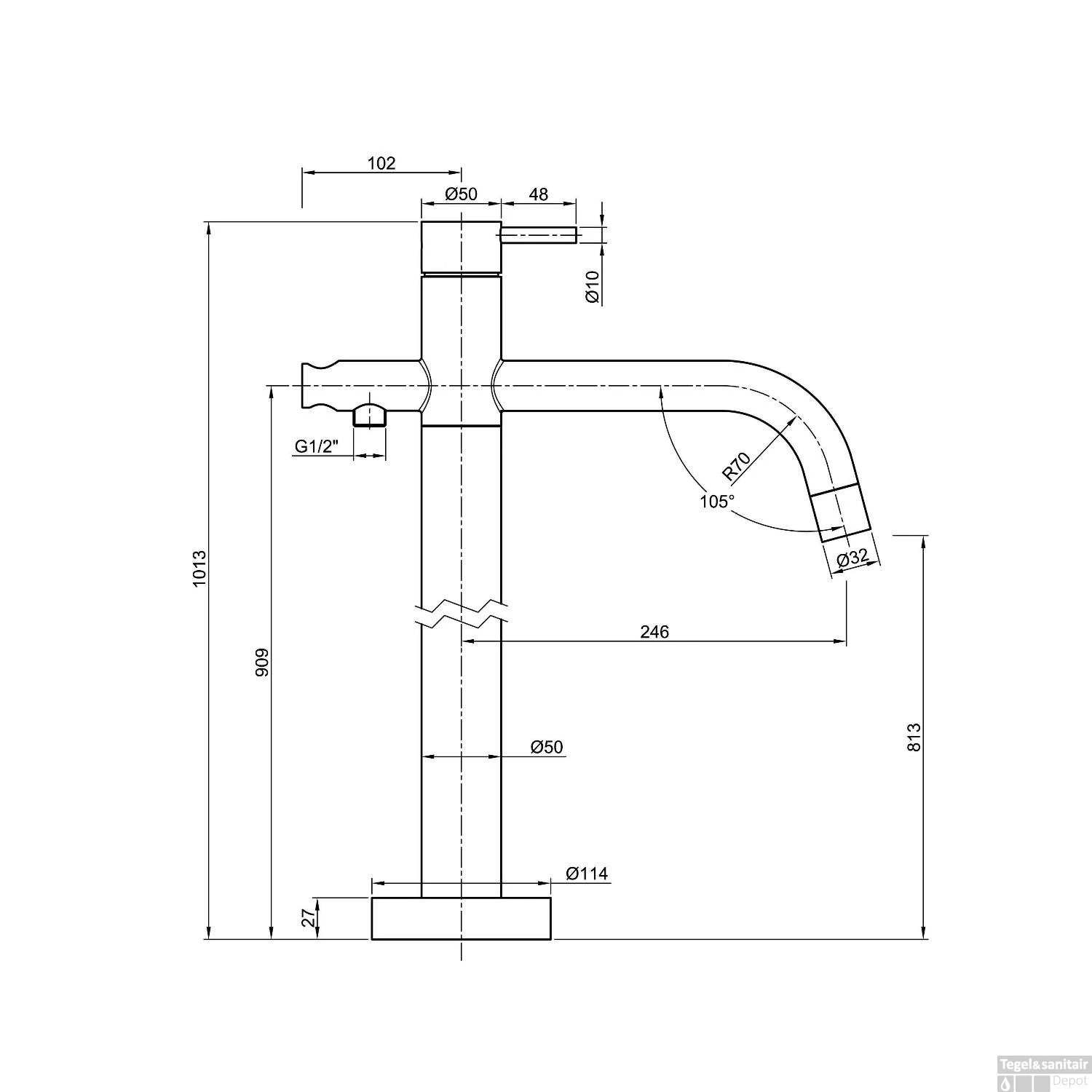 Specificaties Vrijstaande Badmengkraan 101.3 cm met Handdouche RVS Sapho Minimal: