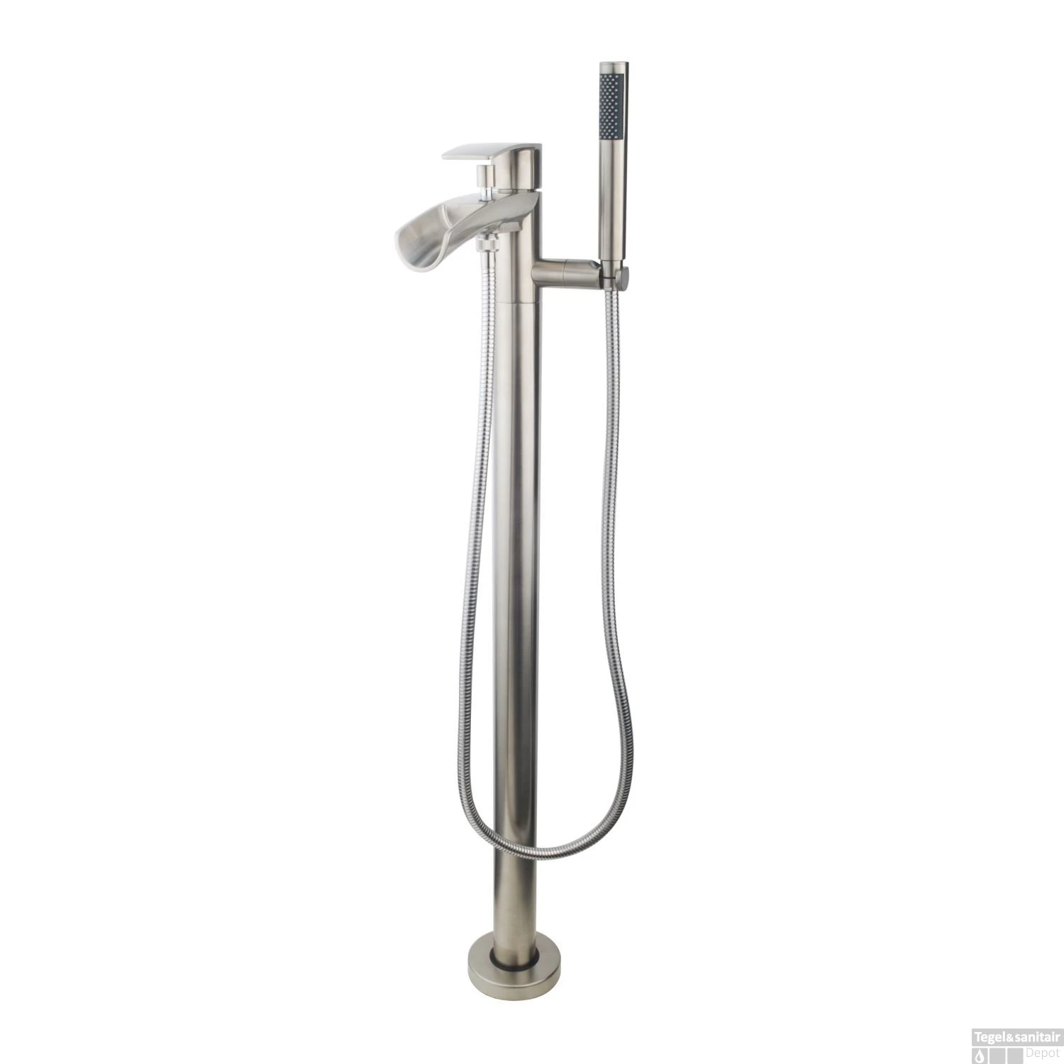 Vrijstaande Badmengkraan Wiesbaden Waterval Geborsteld Staal