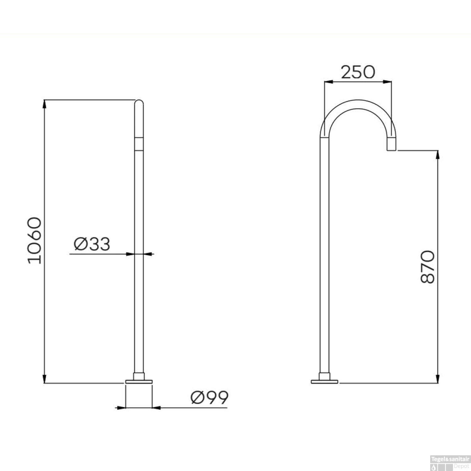 Deze mooie baduitloop komt uit de Garda serie van het merk Lagoo. De uitloop heeft een hoogte van 106 cm en een lengte van 25 cm. De kraan heeft een nikkelen kleur en is gemaakt van messing.