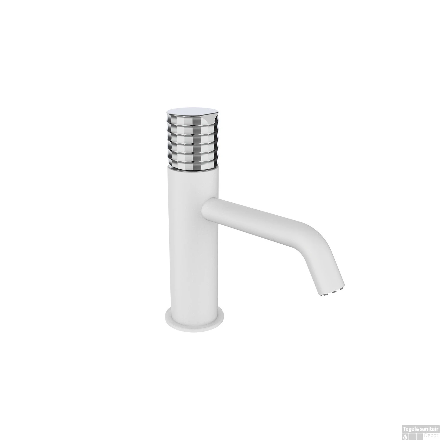 De Aura wastafelkraan van het merk GRB is een uitstekende keus voor in de badkamer. De kraan is vervaardigd uit hoogwaardig messing en kent een afwerking in een fraaie, witte kleur. In combinatie met de chromen knop wordt hiermee een speels en modern karakter gecreëerd die deze wastafelmengkraan zeer uniek maakt. De draaibare knop is voorzien van een ribbelig patroon waardoor extra grip gecreëerd wordt. Deze variant van de Aura wastafelkraan wordt standaard geleverd inclusief flexibele aansluitslangen.