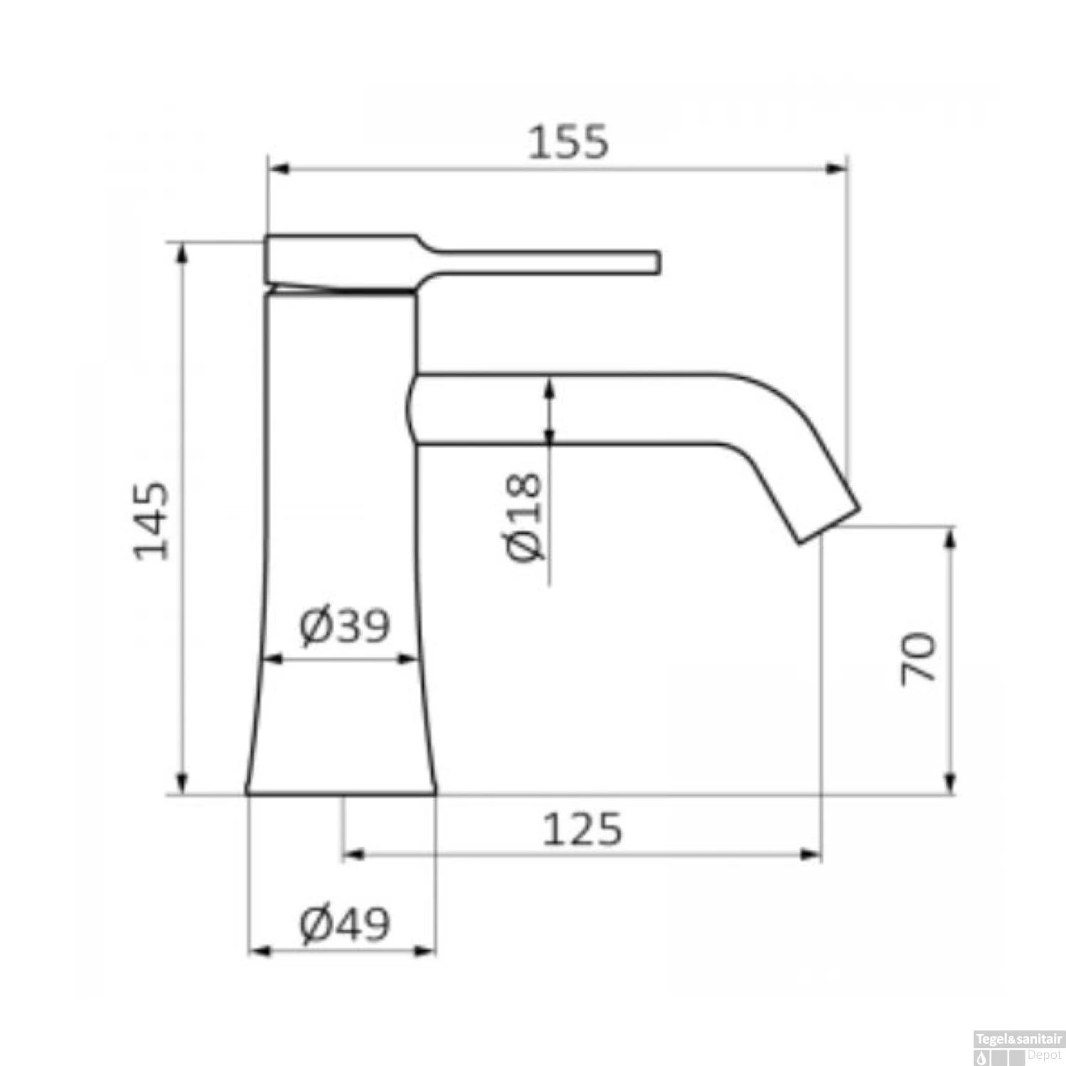 - Hoogte kraan: 14,5 cm