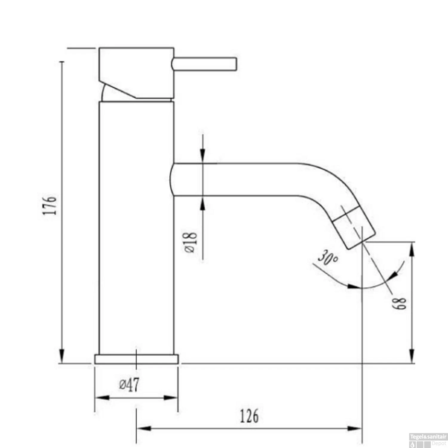 Met de hendel kunt u warm en koud water mengen tot de gewenste temperatuur. De kraan heeft een vaste uitloop en wordt geleverd inclusief waste.