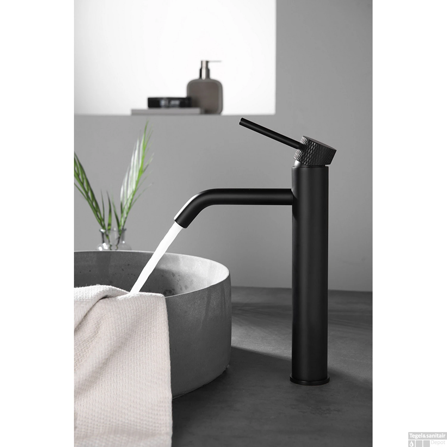 Wastafelkraan Wiesbaden Ribbd Opbouw XL Hoge Uitloop Mat Zwart