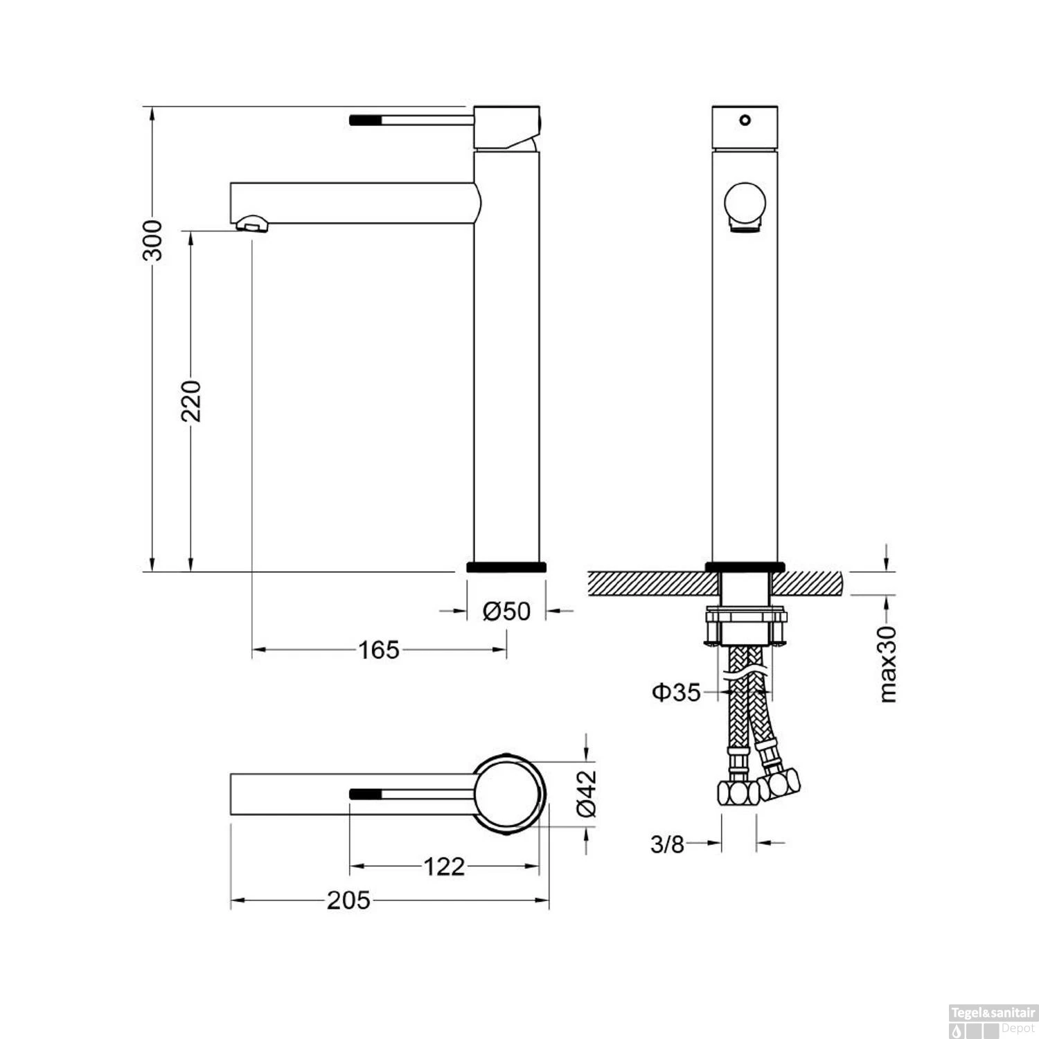 Specificaties Wastafelmengkraan 30 cm 1-hendel Mat Goud Best Design Nancy: