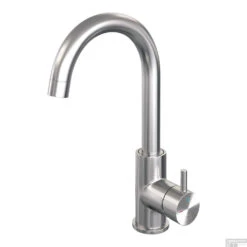 Wastafelmengkraan Brauer Brushed Edition Coldstart Opbouw Hoog Gebogen Korte Ronde Hendel Geborsteld RVS PVD