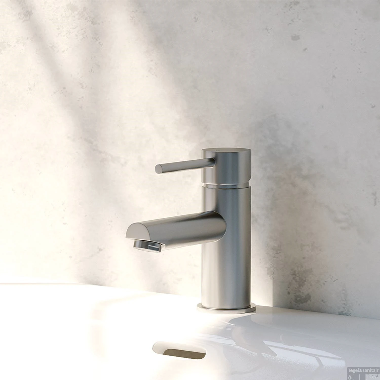Wastafelmengkraan Brauer Brushed Edition Coldstart Opbouw Laag Ronde Hendel Geborsteld RVS PVD