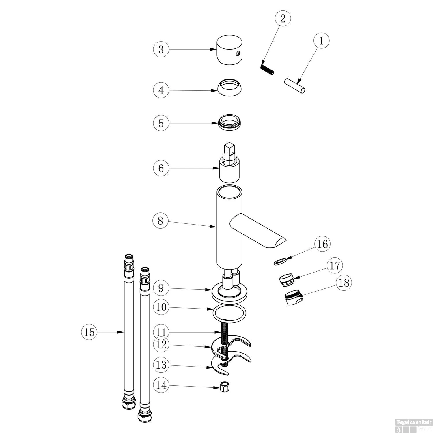 Specificaties Wastafelmengkraan Differnz Recht Mat Chroom