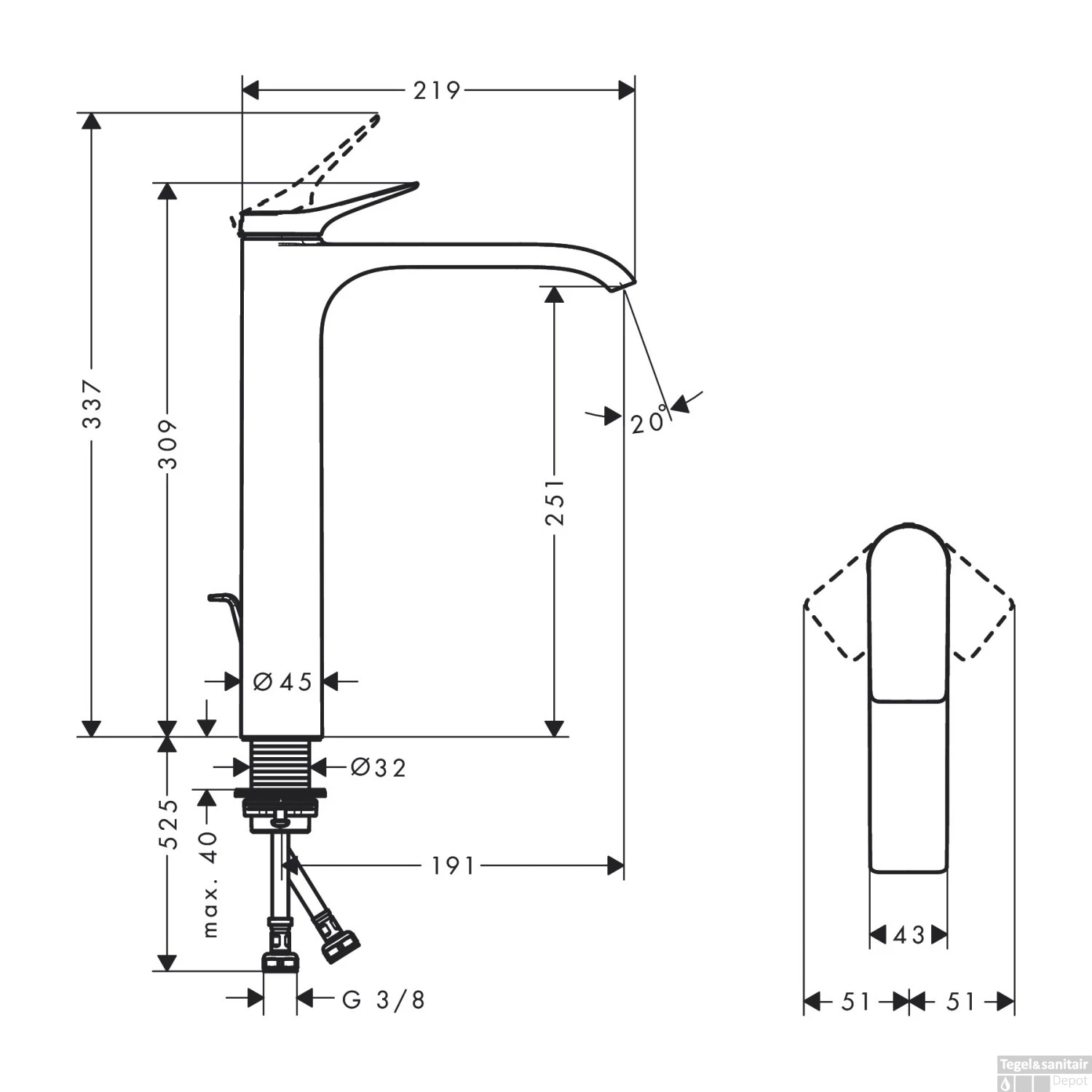 Deze stijlvolle mengkraan komt uit de Vivenis serie van HansGrohe. Het design past perfect binnen elke interieurstijl in uw badkamer of toiletruimte. De mengkraan heeft een hendel aan de bovenkant waarmee u de temperatuur bepaald. Hierbij wordt warm en koud water met elkaar vermengt tot de gewenste temperatuur. De kraan heeft een vaste uitloop met een rechthoekige vorm. Deze kraan is gekenmerkt met een Comfortzone 250. Kranen van HansGrohe die dit merkteken dragen zijn voorzien van royale afmetingen, uitgekiende techniek en intuïtieve bediening. Zo heeft u altijd voldoende ruimte om uw handen te wassen.