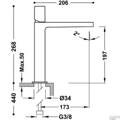 Specificaties Wastafelmengkraan Inbouw Tres Slim Exclusive 2 Delen Lange Gebogen Uitloop en Hendel Mat Wit: