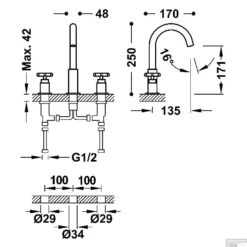 Specificaties Wastafelmengkraan Inbouw Tres Slim Exclusive Gebogen Uitloop en Lange Hendel RVS: