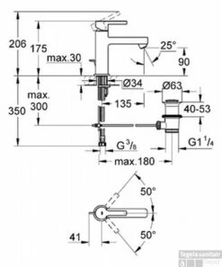 De afdekplaat heeft een afmeting van 19,4×7,4 cm. De uitloop is 18 cm lang. Het is een mengkraan. Door de hendel te bewegen draait u de kraan open en dicht en mengt u koud en warm water tot de gewenste temperatuur.