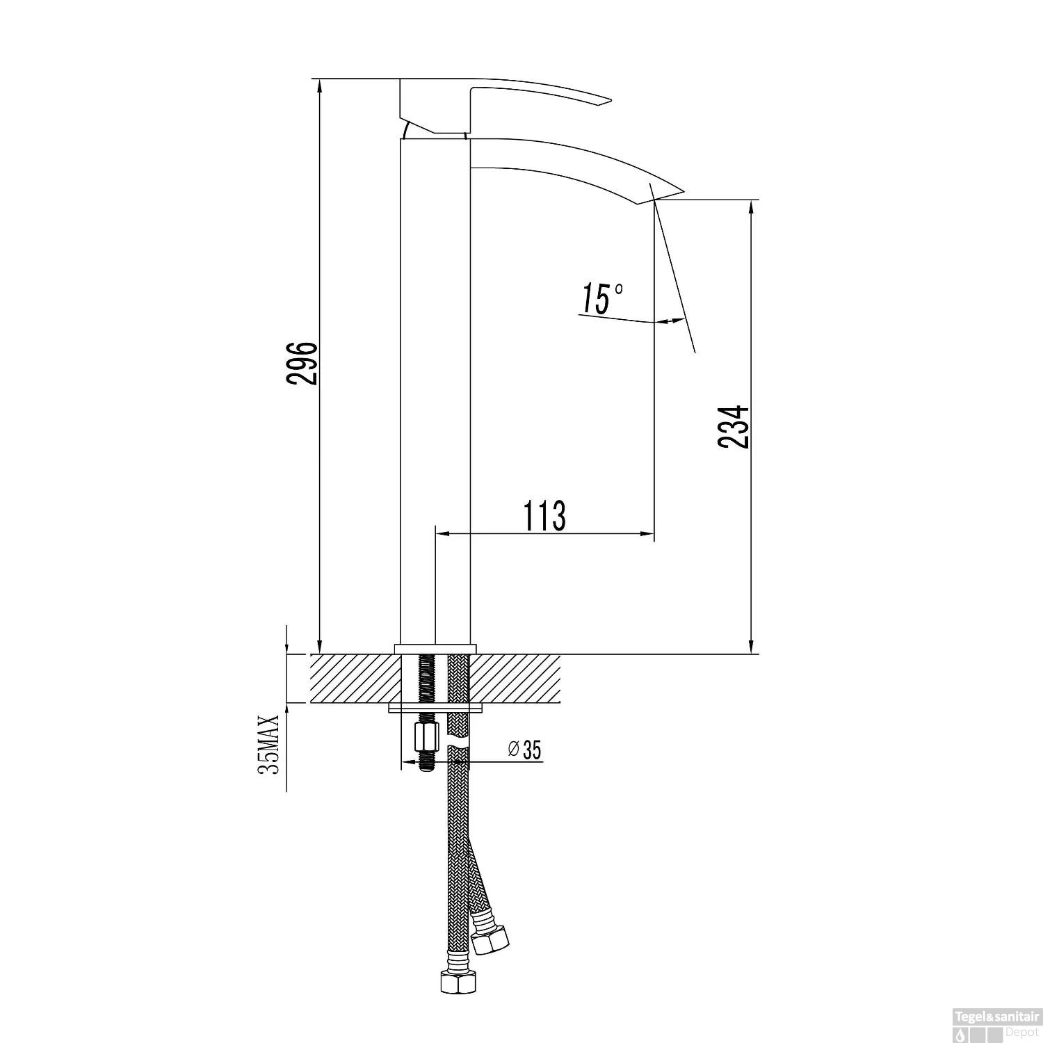 Specificaties Wastafelmengkraan 1-hendel Gebogen Hoog 29.6 cm Chroom Sapho Ginko: