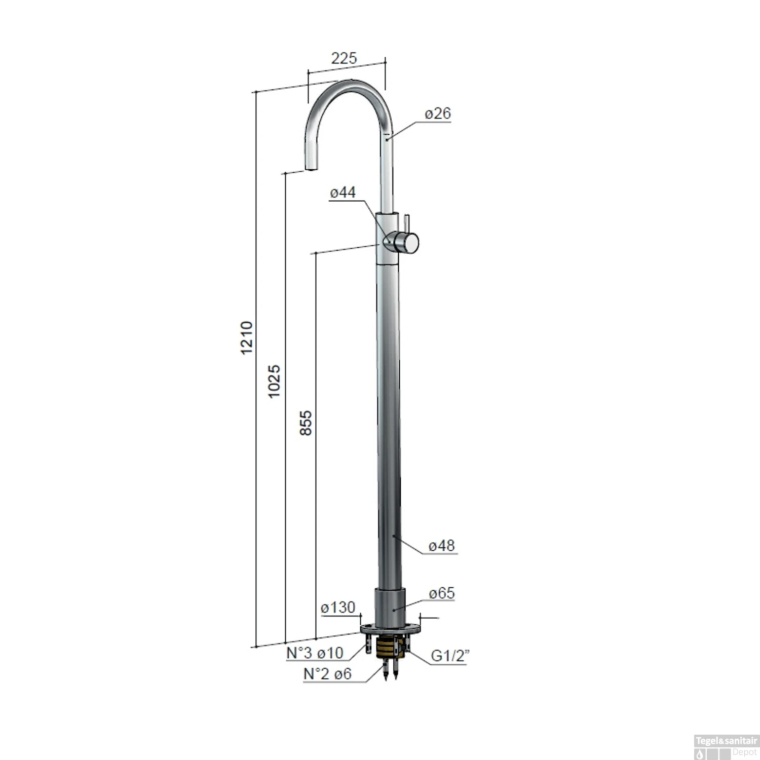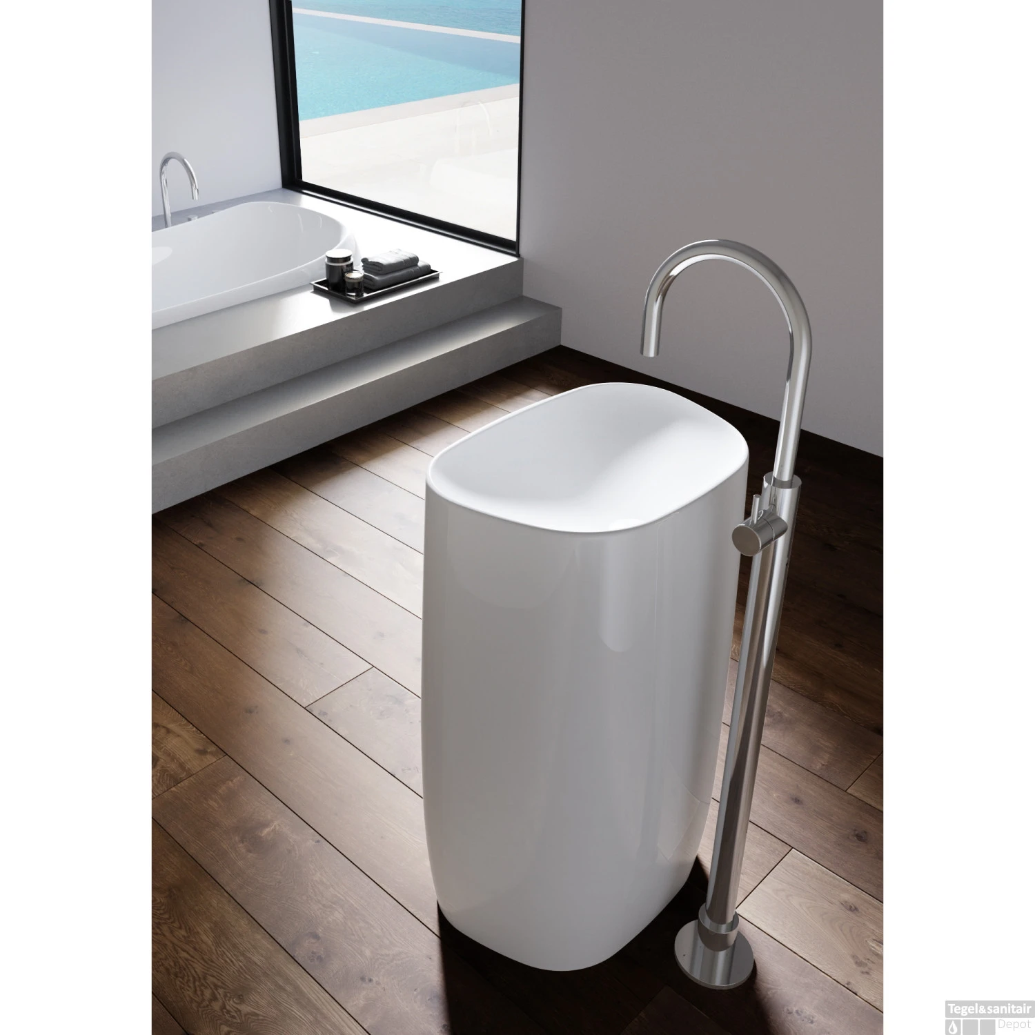 Heb je een vrijstaande wastafel? Dan past deze vrijstaande wastafel kraan daar natuurlijk perfect bij. Deze vrijstaande wastafel kraan heeft een hoogte van 121 cm. De wastafelkraan is een mengkraan, en heeft een warm en koud water aansluiting. De uitvoering, vorm en hoogte van de wastafelkraan is afhankelijk van je persoonlijke smaak en wastafel.