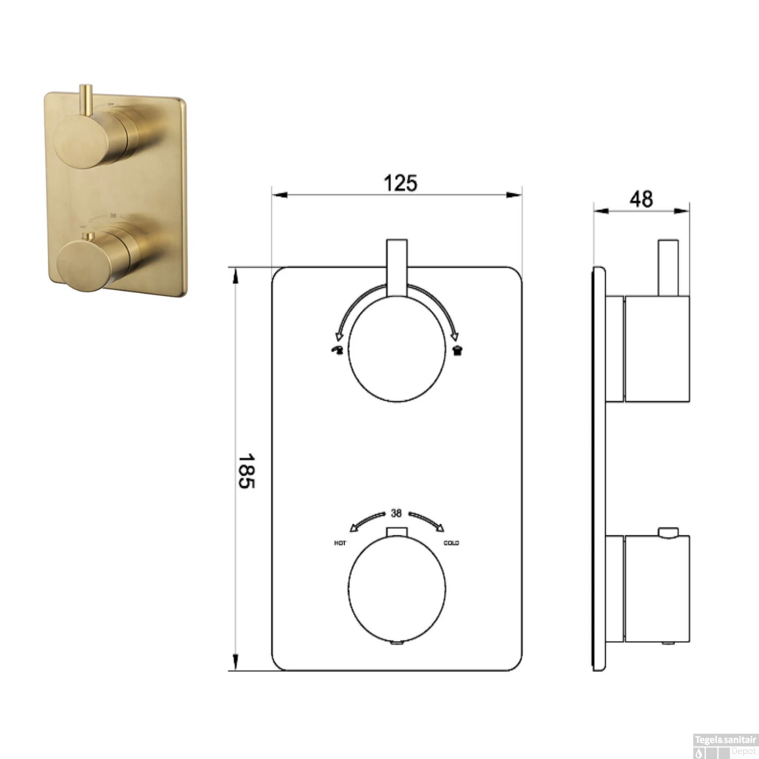 - Wiesbaden Douchekraan Caral thermostatisch afbouwdeel 2-weg Geborsteld Messing