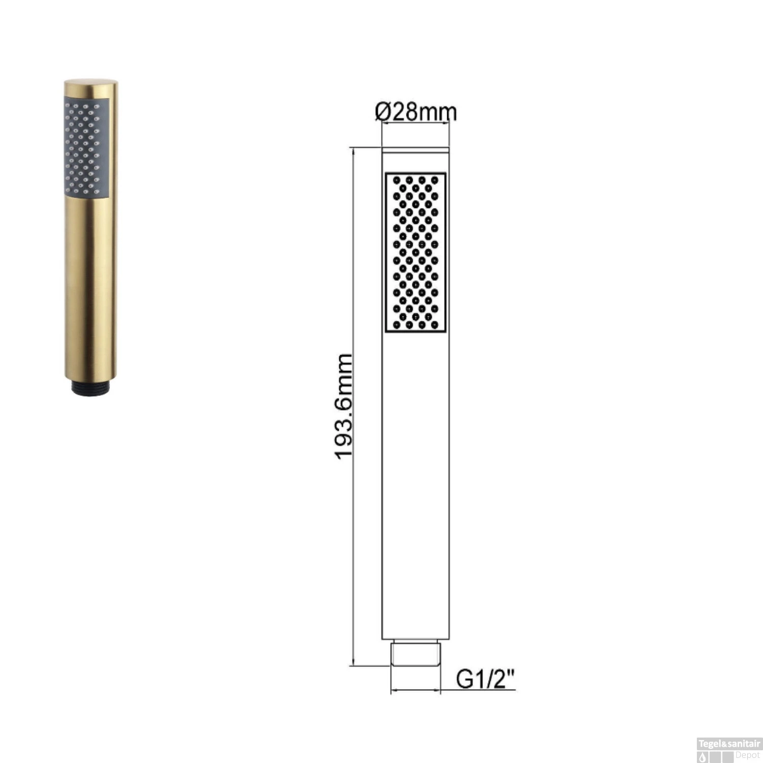 - Afmeting handdouche: 20 x 2,5 cm