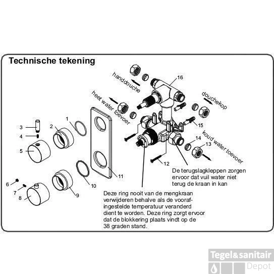 - Extra ondiepe inbouw van 62mm. (thermostaat)